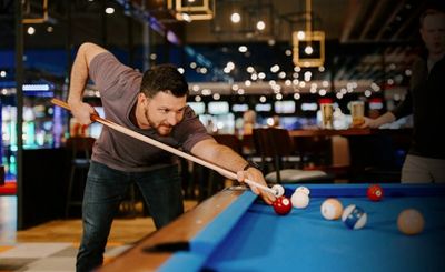 The game of pool requires players to move constantly around the table and change their positions regularly.