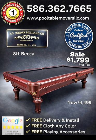 OUR CERTIFIED PREOWNED POOL TABLES SELL VERY FAST.
